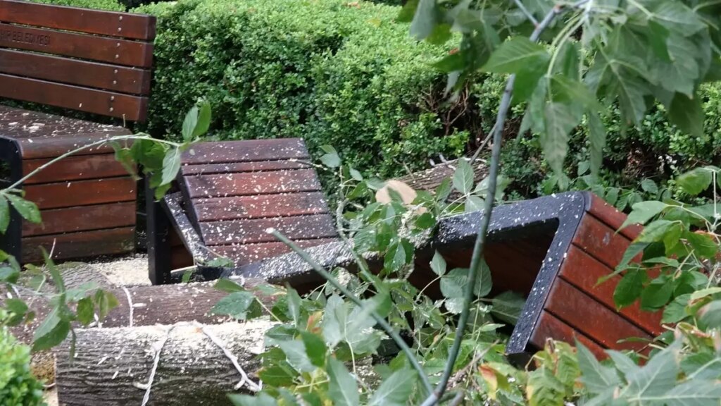 TRABZON’da tesirli olan kuvvetli rüzgar nedeniyle Meydan Parkı’ndaki bankların üzerine ağaç devrildi. Gruplar, ağacı kesip kaldırırken, parktaki bankların kırıldığı tespit edildi.