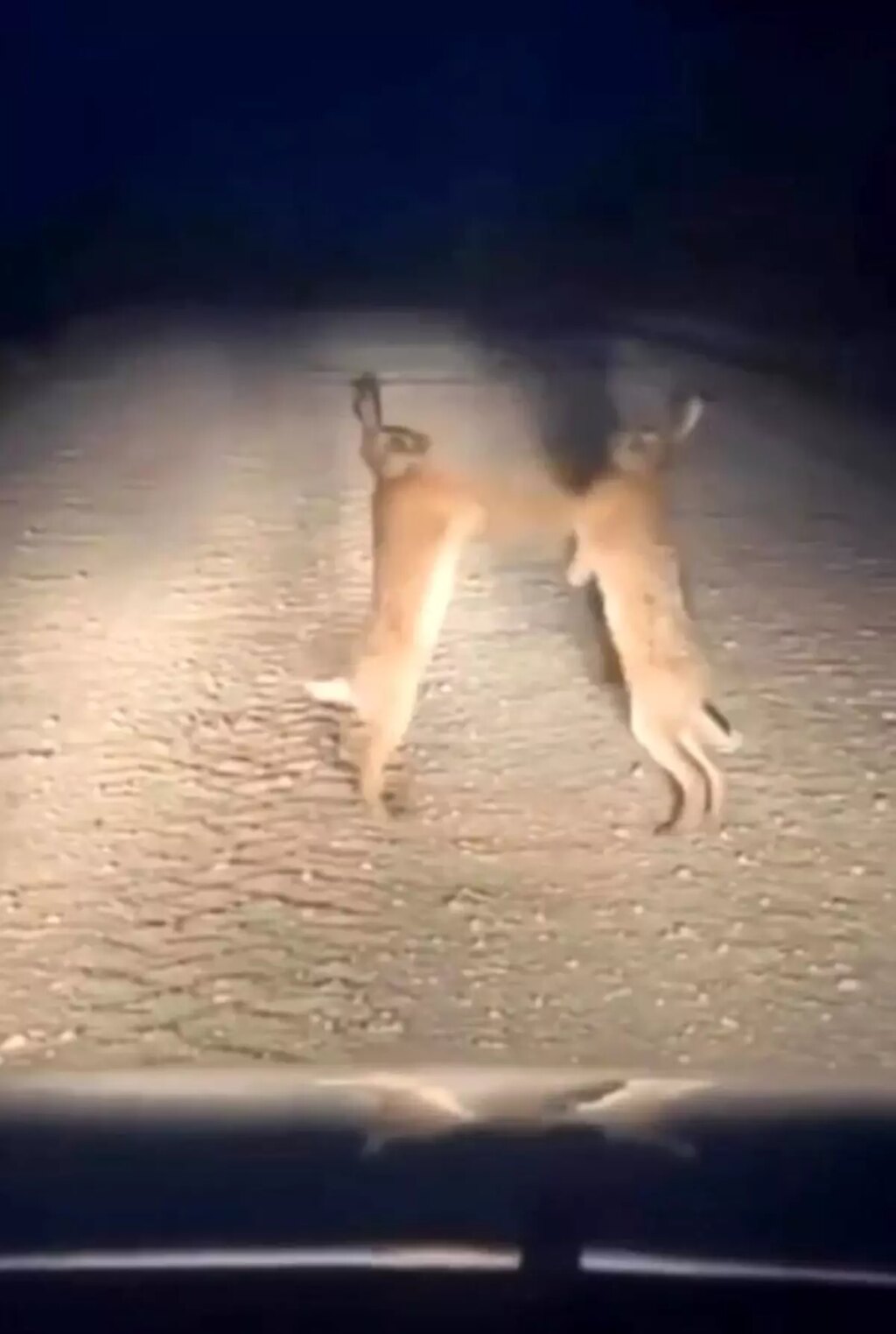 Bayburt’un Aydıntepe ilçesinde iki yaban tavşanı yol ortasında hengame ederken görüntülendi. Boks maçını aratmayan o anlar, yoldan geçen bir şoför tarafından cep telefonu kamerasıyla kaydedildi.
